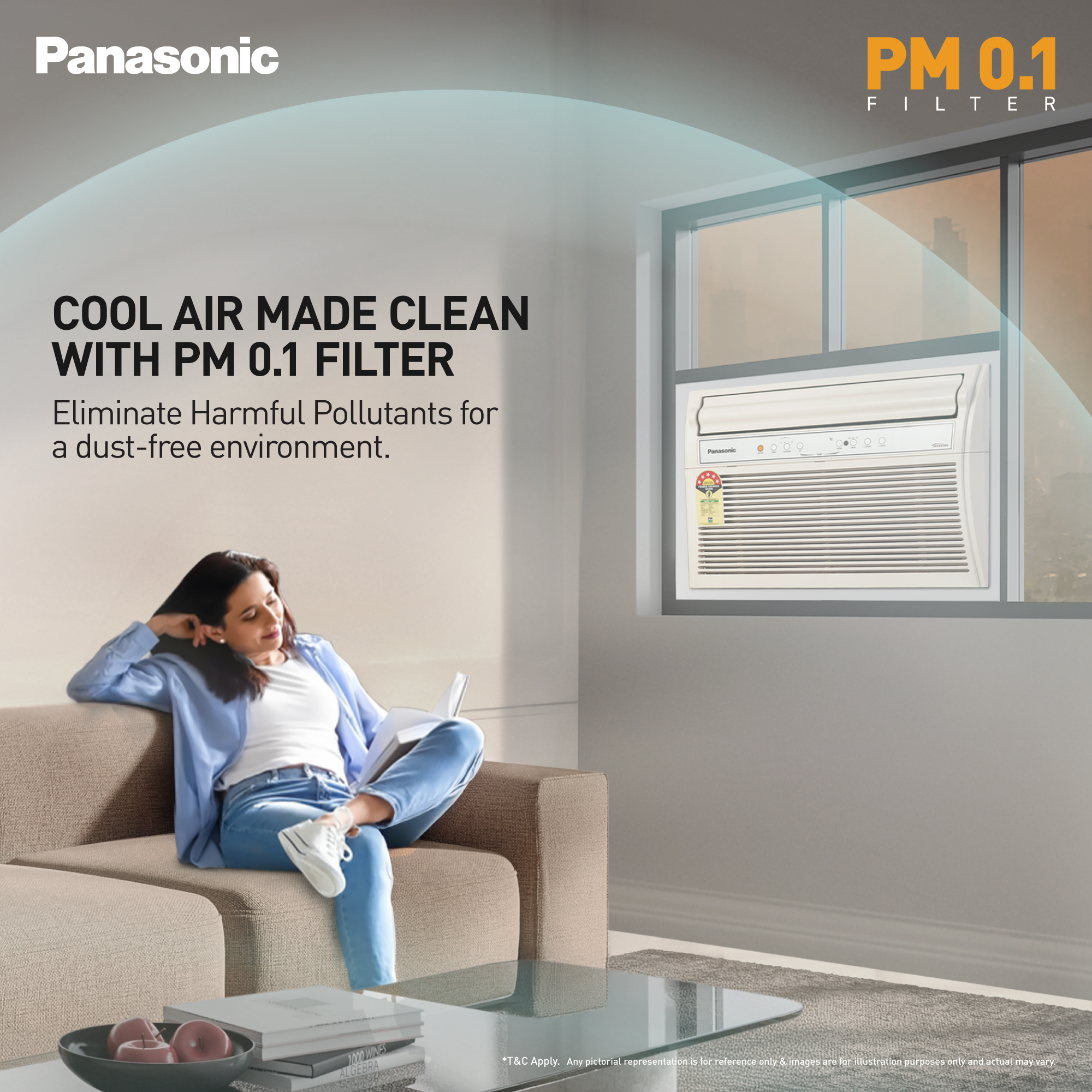 Panasonic 1.5 Ton 5 Star Inverter Premium Window AC (Top Throw Airflow, 50°C Operation, Copper Condenser, 8in1 Convertible, 4-Way Swing, PM0.1 Filter, ECO Mode, Powerful Mode, CW-XU185CGT, White)
