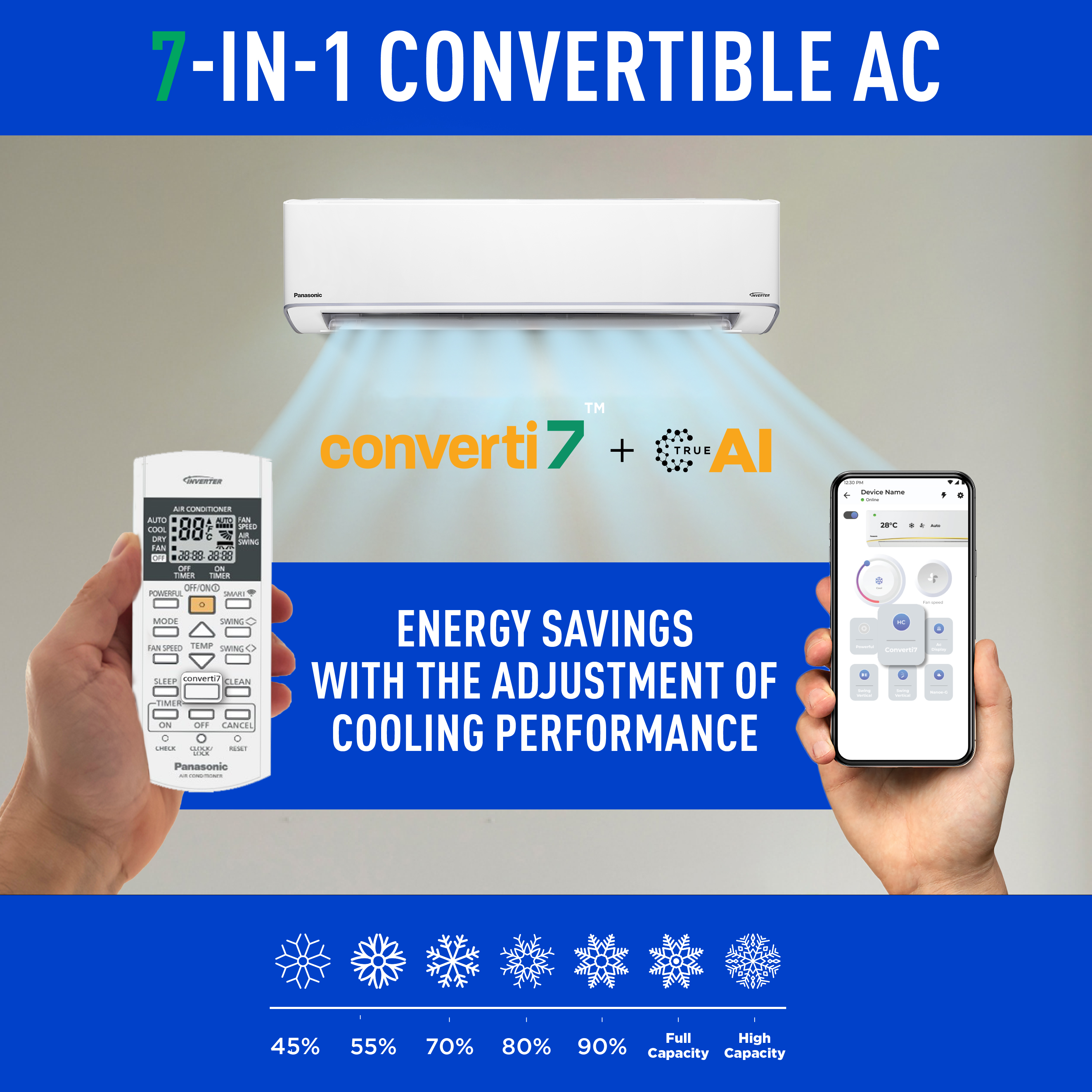 While Panasonic Inverter Air Conditioners are truly auto convertible, there is a provision to manually adjust the AC for up to 7 stages of cooling performance ranging from 45% to more than 100%, this can be done via Converti7 button on the remote or on the Miraie app