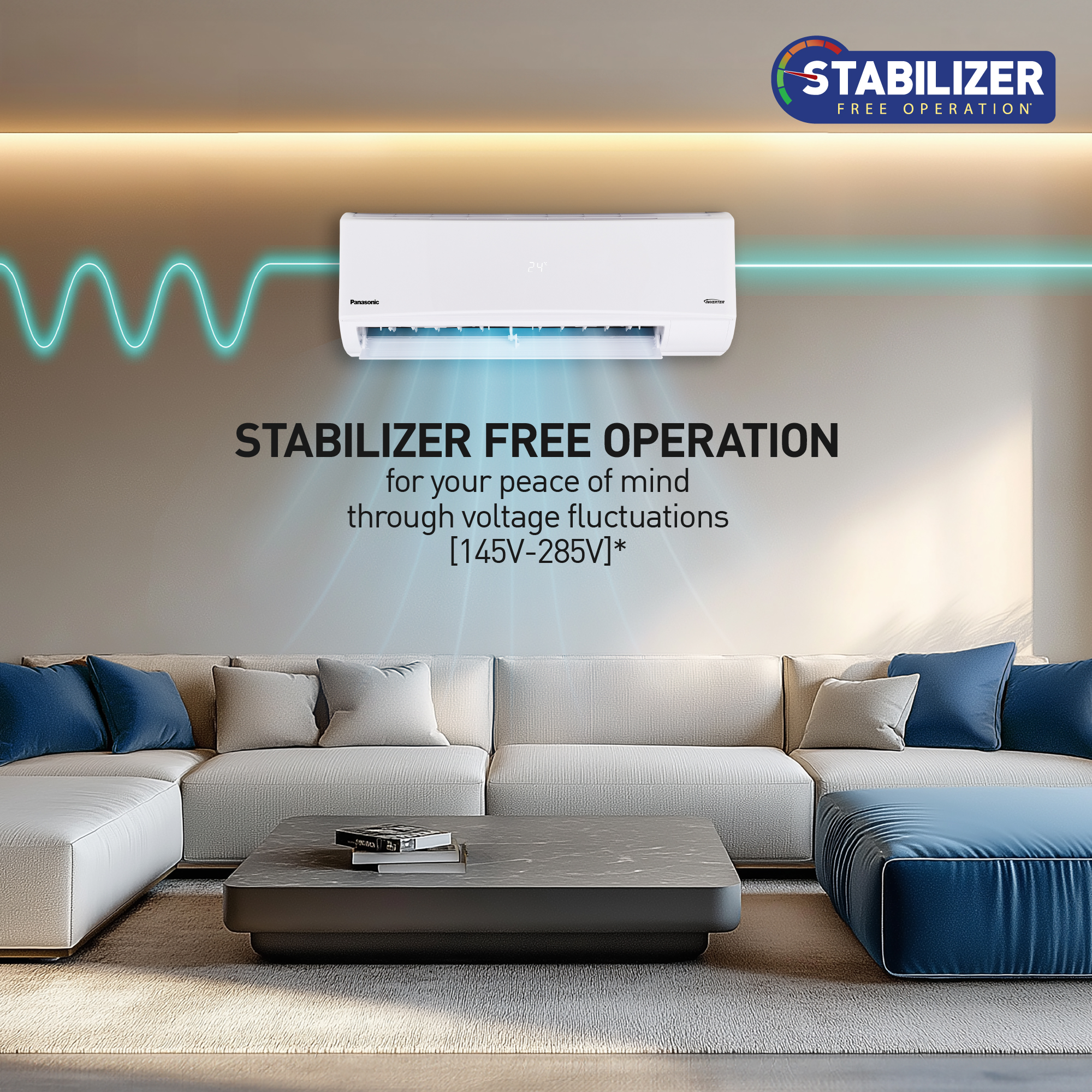 Panasonic ACs are designed to operate without constraints or limitations using stabilizer free operation with a well-defined wide voltage range, keeping your cooling energy efficient and optimised. If voltage fluctuations are beyond the defined voltage range, a stabilizer is required.