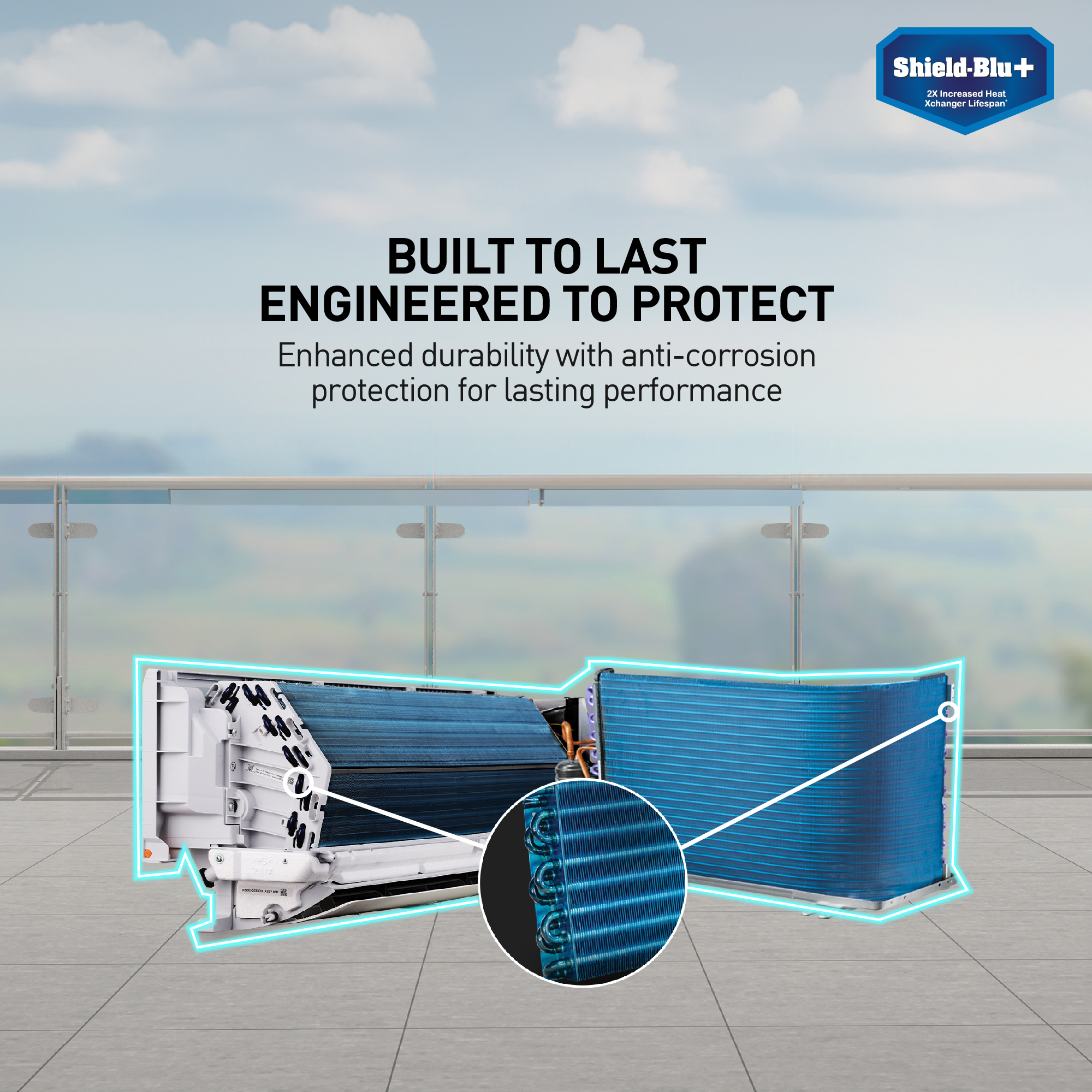 - Copper Condenser Coil: Better cooling and requires low maintenance.Healthy Cooling: Equipped with the PM 0.1 Filter.Longer Heat Exchanger Life: Special ShieldBlu+ protection coating to prevent leakages.