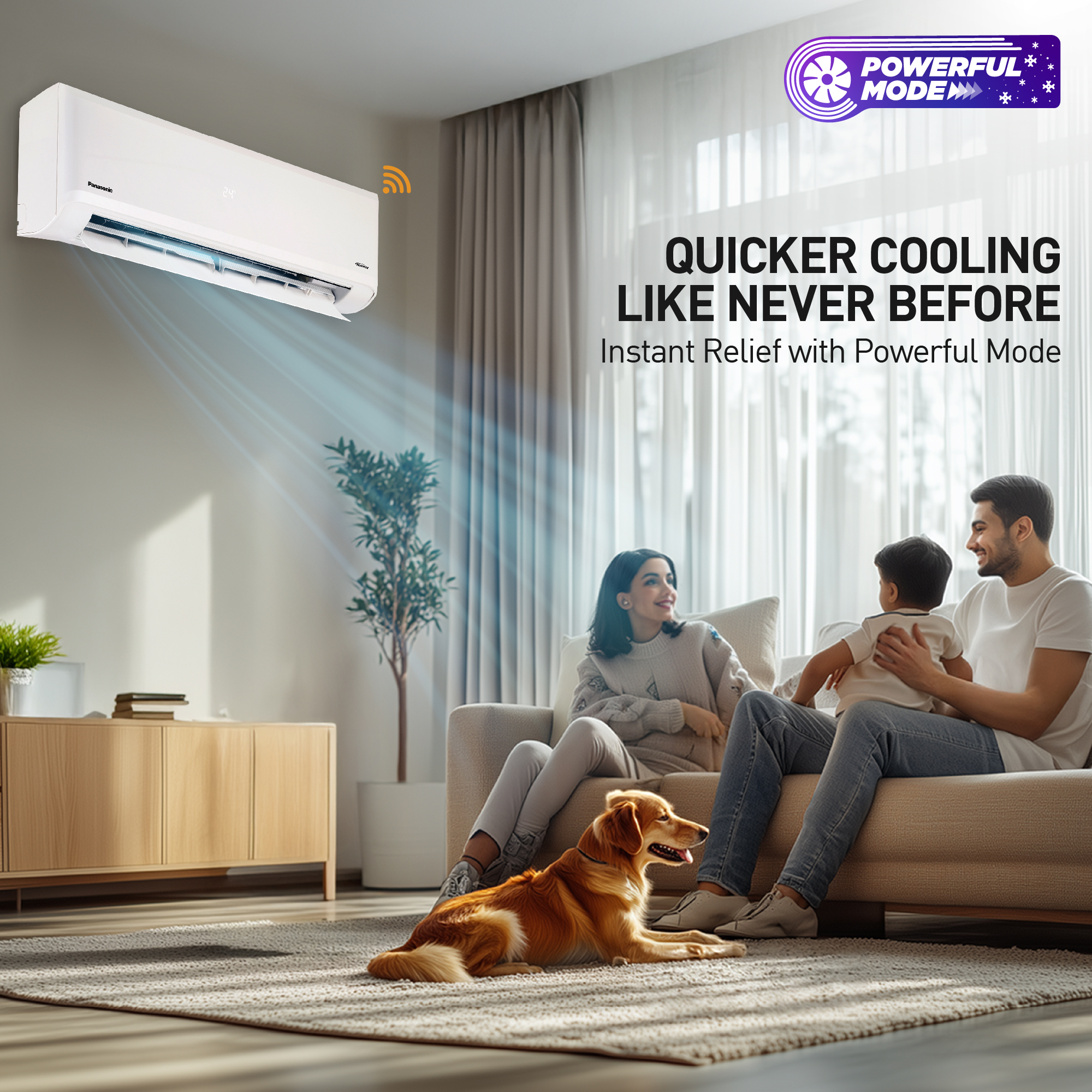 As temperatures rise outside, so will indoor temperatures. Being outdoors can keep you uncomfortable and sweaty. But that doesn't mean you have to prolong that discomfort after you set foot indoors. Panasonic air conditioners with POWERFUL mode delivers powerful cooling with strong airflow to cool a room quickly, providing an instant relief during hot days.
