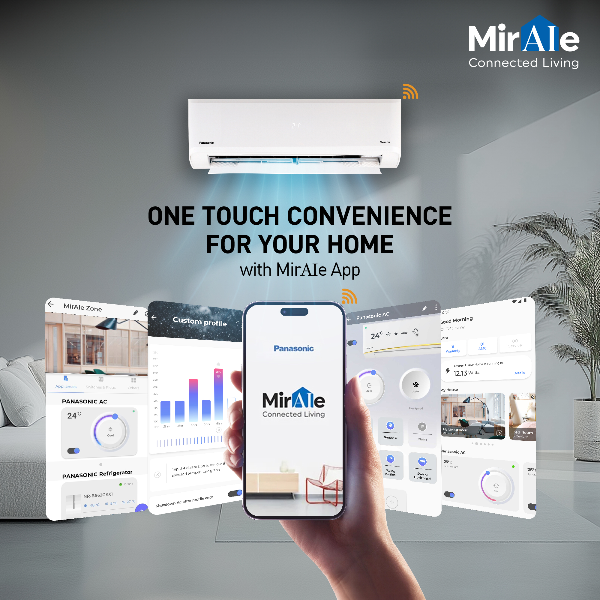 The MirAIe App brings unparalleled convenience to cooling, connectivity, and comfort. With this intelligent app, you can effortlessly control their Panasonic ACs by adjusting the temperature, monitoring operational status, changing modes, and switching the unit on or off from anywhere at any time with just a single tap. With MirAIe, you can switch your Panasonic Air Conditioner on and off from anywhere, anytime.
