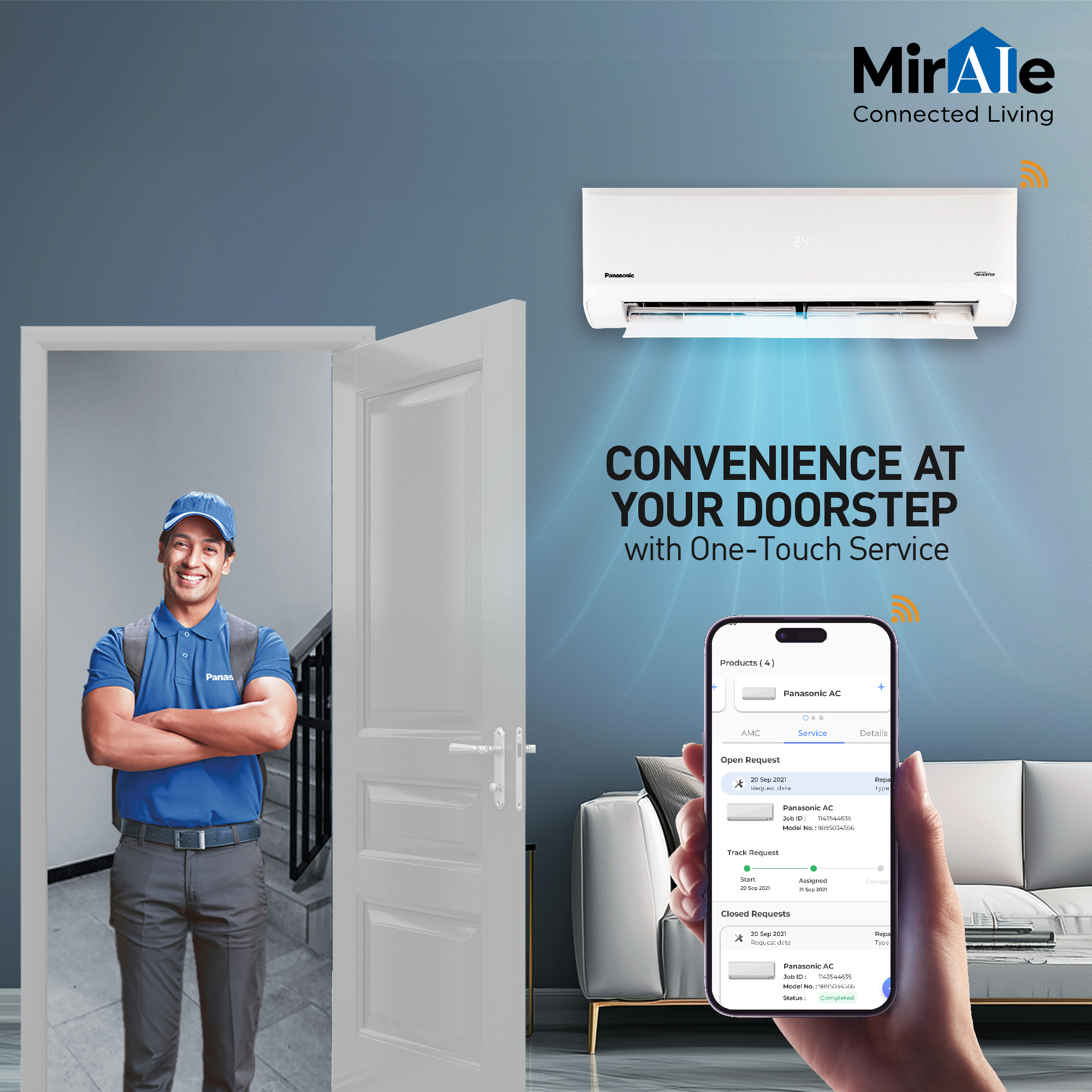 Panasonic Air Conditioners are truly smart and self-reliant, with an intuitive auto-diagnosis feature that detects issues if occurs and provides users with alerts and warnings. Further, with One Touch Service, users can easily place maintenance and service requests directly on the MirAIe app and manage AC warranties easily.