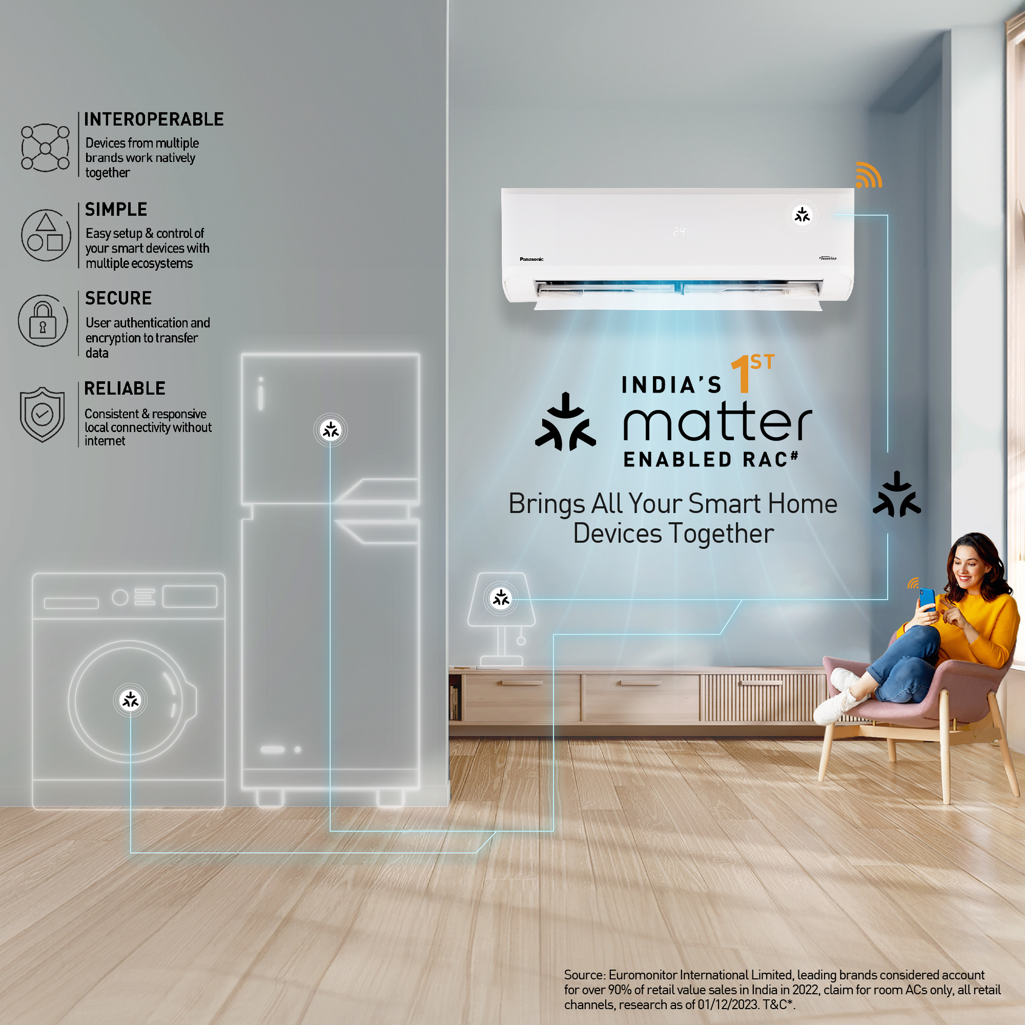 A.1. Our India's 1st Matter enabled Room Air Conditioners range offers interoperability where devices from different brands come together natively, helping you choose from a wider range of options without worrying about compatibility problems. It also comes with enhanced security, a faster & simple set-up procedure.