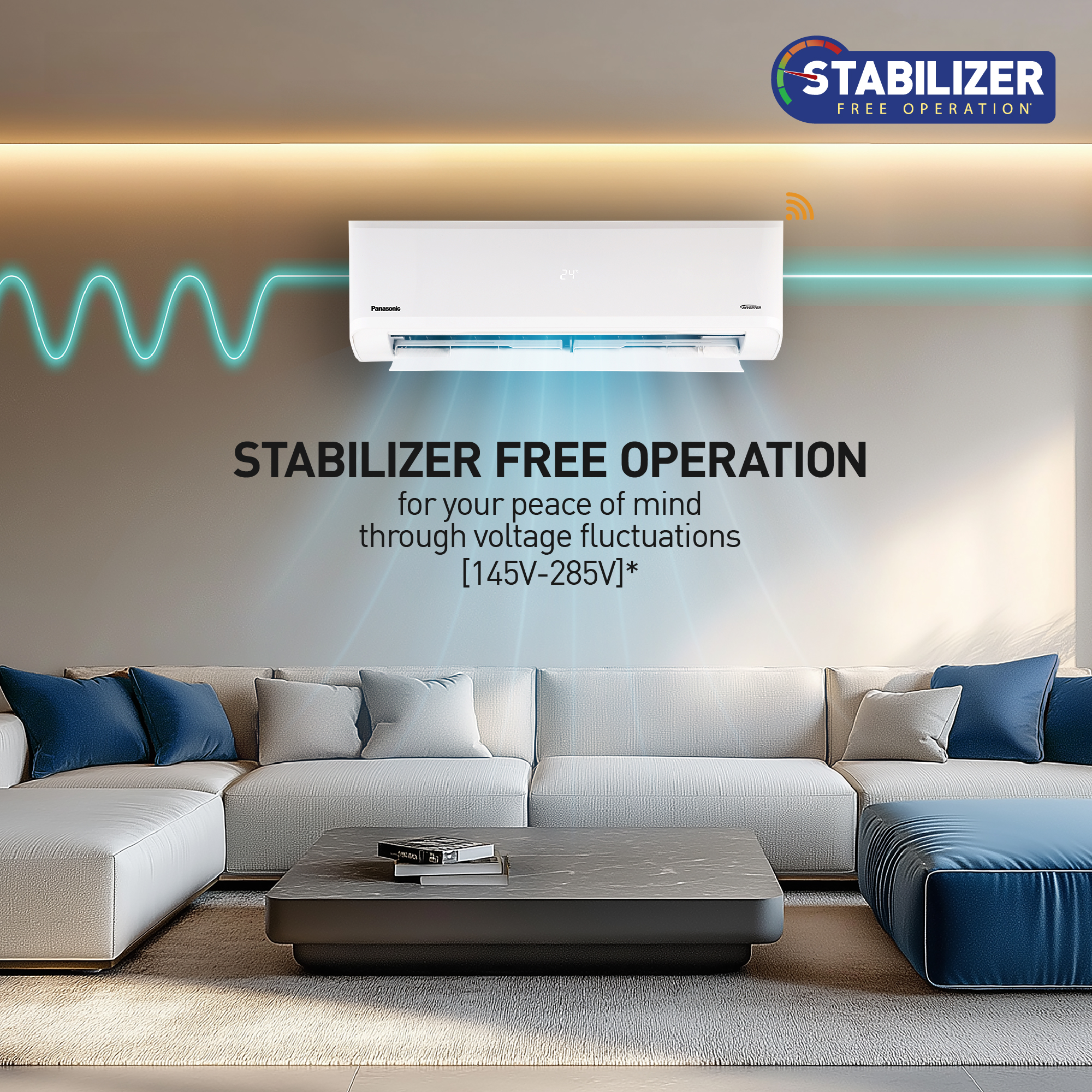 Panasonic ACs are designed to operate without constraints or limitations using stabilizer free operation with a well-defined wide voltage range, keeping your cooling energy efficient and optimised. If voltage fluctuations are beyond the defined voltage range, a stabilizer is required.