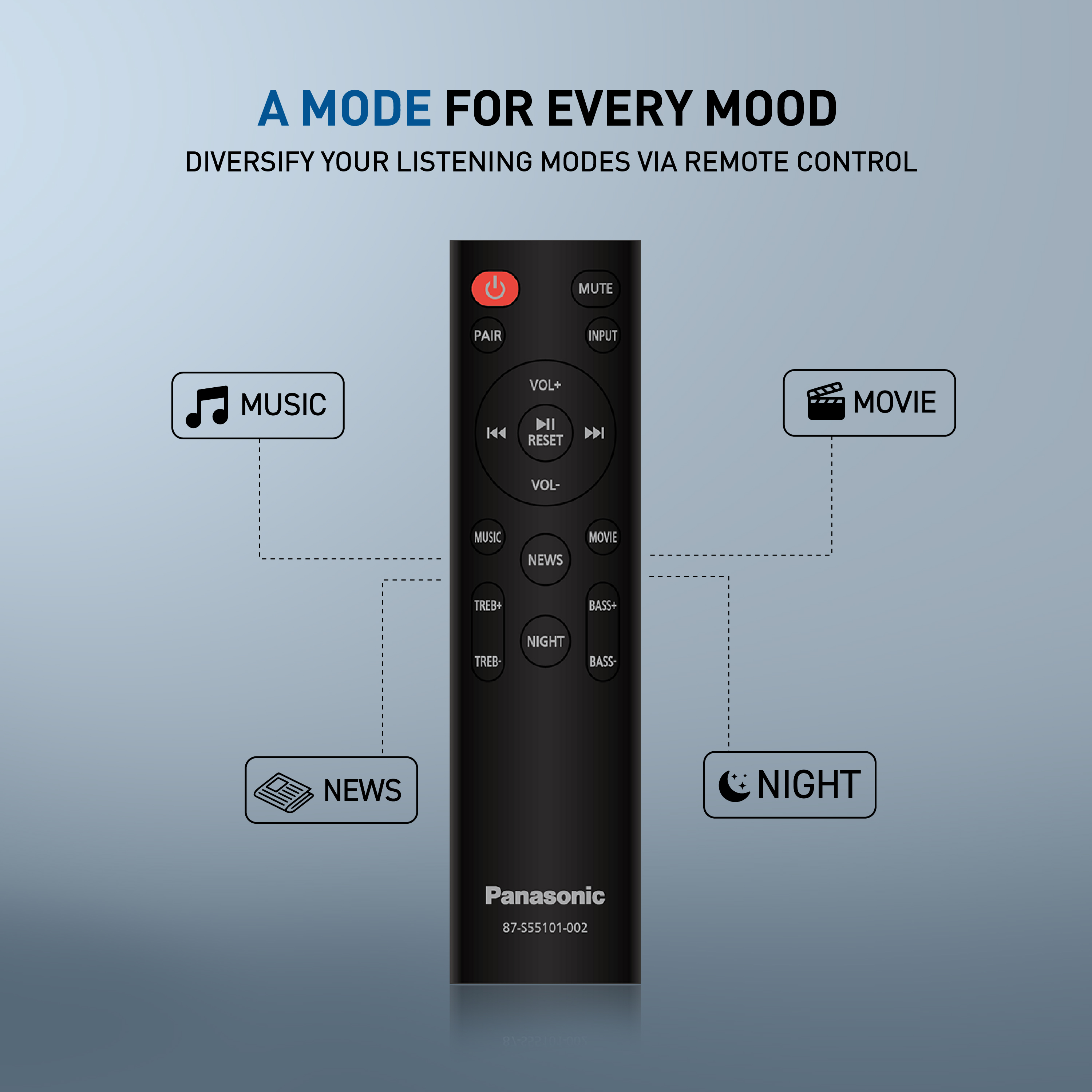 Take control of your speaker from anywhere in the room with a sleek remote, giving you the freedom to adjust settings effortlessly.