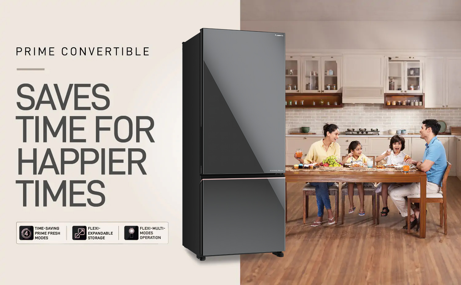 Your requirement of storage differs from time to time. The Prime Convertible provides you with dedicated Prime Fresh convertible zone and also lets the freezer be converted into a fridge to accommodate all your storage needs