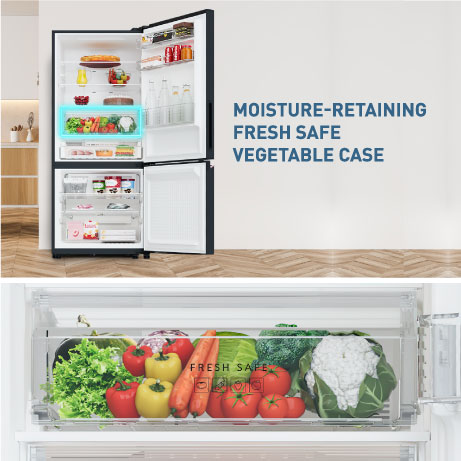 Avoid the bend-and-pain routine with the bottom-mount freezer design which creates space for vegetables in the upper section itself. This lets you access your veggies without requiring you to bend down to access the vegetable tray every time.