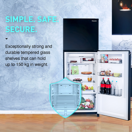 The higly durable tempered glass shelves can withstand weight upto 150 kgs; making it easy to store heavy pans and containers.