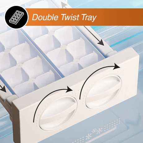 The detachable double twist ice tray makes it easy to dispense and collect ice in the ice box below