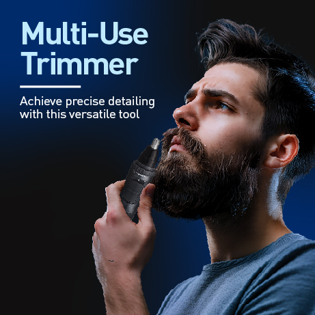 Multi-use trimmer is a versatile grooming tool with various attachments and settings, designed for trimming beard, nose, ear and eyebrow. It consolidates multiple grooming functions into one device for convenience and efficiency.