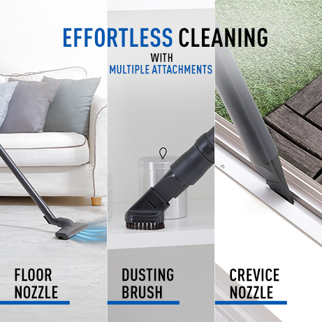 - Effortless cleaning with Crevice Nozzle & Dusting Brush