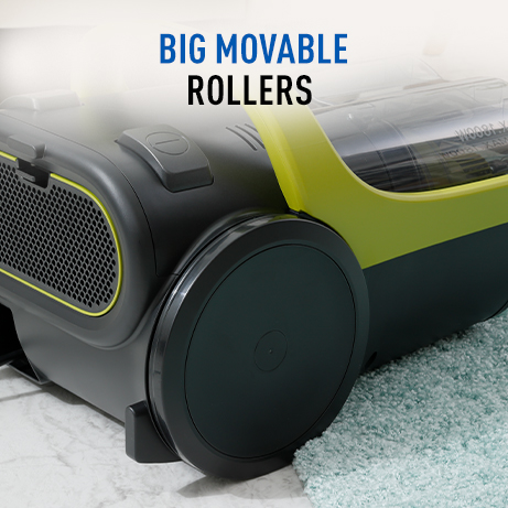 The big rollers move smoothly over thick carpets for easier cleaning.